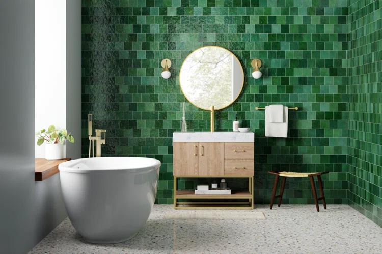 My favorite touch is mixing different finishes of the green tile like matte with glossy tiles scattered throughout for shine and dimension. Another option is going with different shades of green tiles to create subtle patterns.